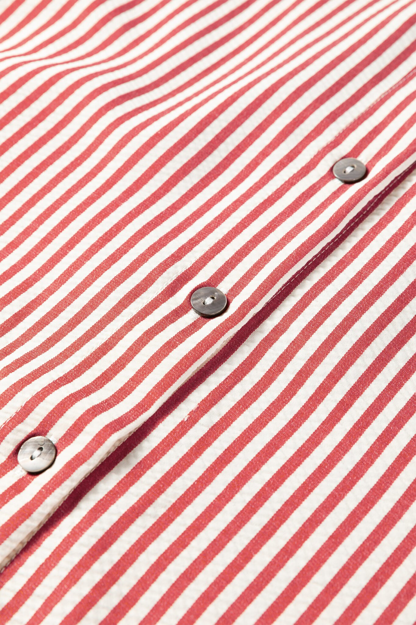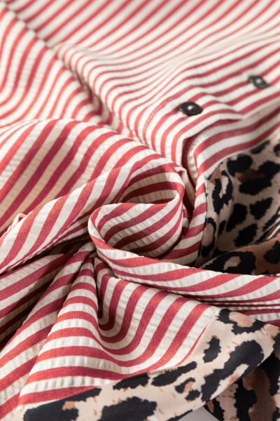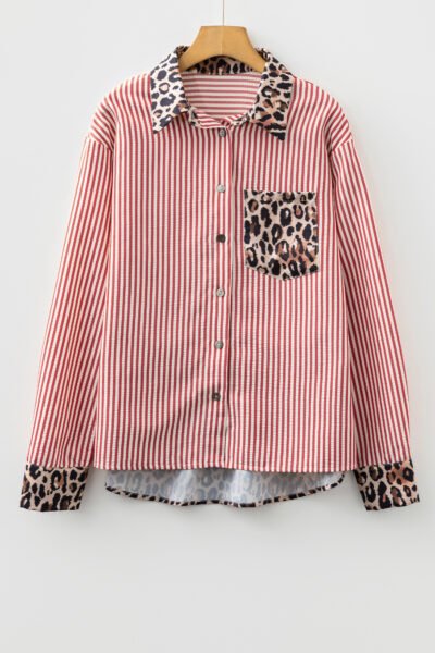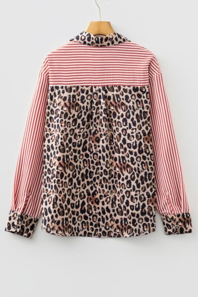 Racing Red Striped Leopard Print Patchwork Button Up Womens Shirt