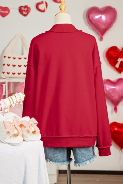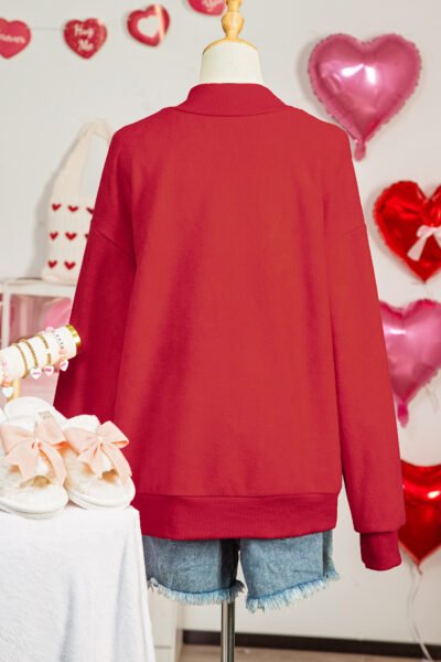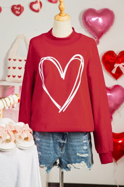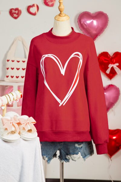 Racing Red Valentines Day Heart Love Script Reversible Printed Double Wear Mock Neck Sweatshirt