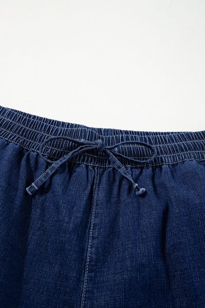 Real Teal Plus Size Drawstring High Waist Wide Leg Casual Jeans