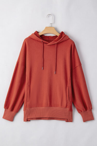 Red Clay Drop Shoulder Pocketed Baggy Drawstring Hoodie