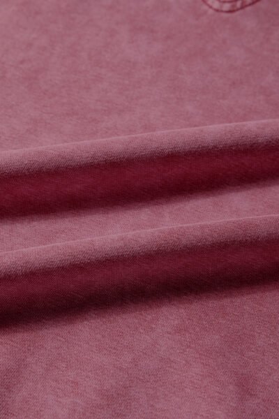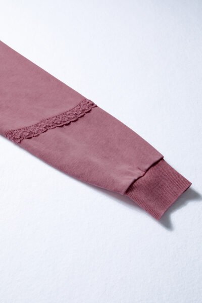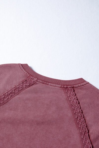 Red Dahlia Lace Patchwork Detail Notched Neck Mineral Wash Baggy Sweatshirt