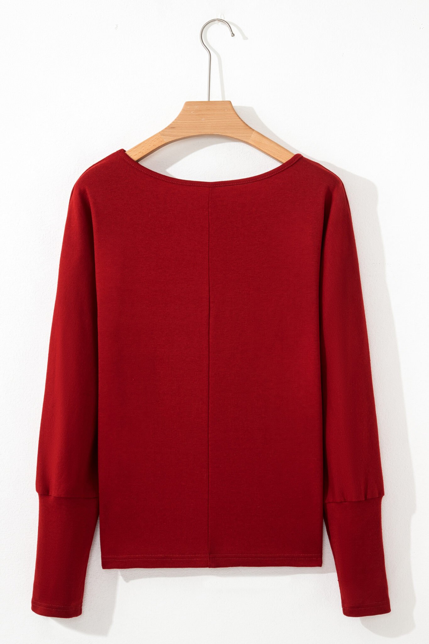 Red Dahlia Solid Color Extended Cuffs Long Sleeve Top