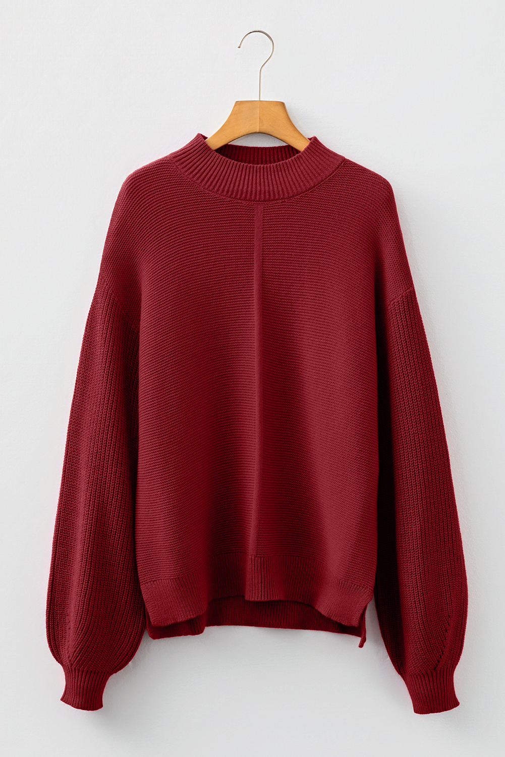 Red Dahlia Solid Color Front Seam Drop Shoulder Loose Sweater