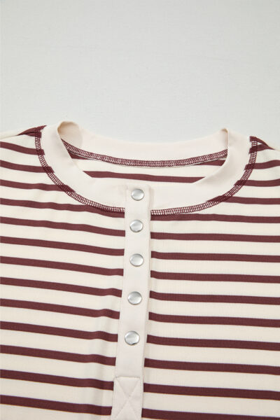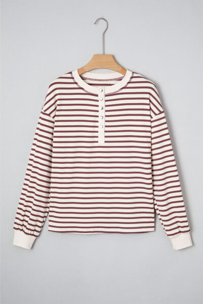 Red Dahlia Striped Print Drop Shoulder Long Sleeve Henley Top