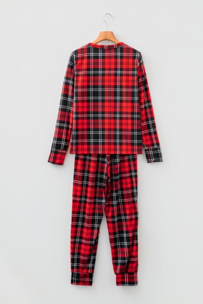 Red Festive Plaid Print Round Neck Long Sleeve and Pants 2 Piece Lounge Set