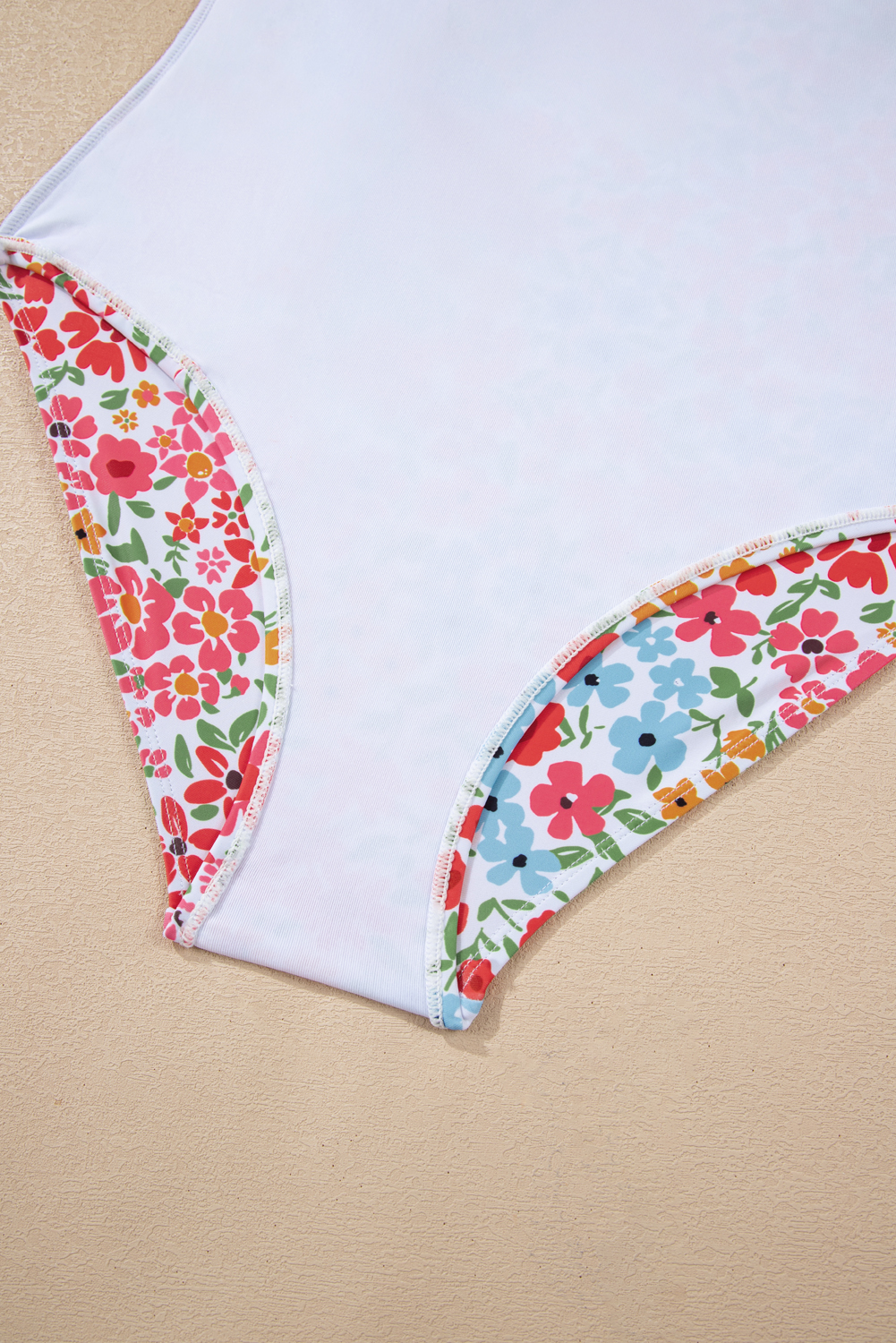 Red Floral Print Ricrac Trim Spaghetti Strap One Piece Swim Dress
