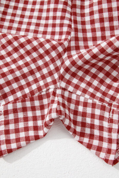 Red Gingham Printed High Waist Shorts