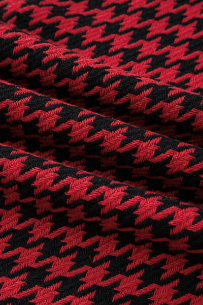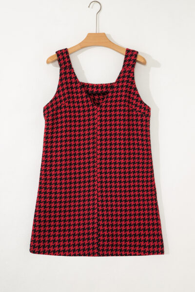 Red Houndstooth Print V Neck Sleeveless Mini Dress