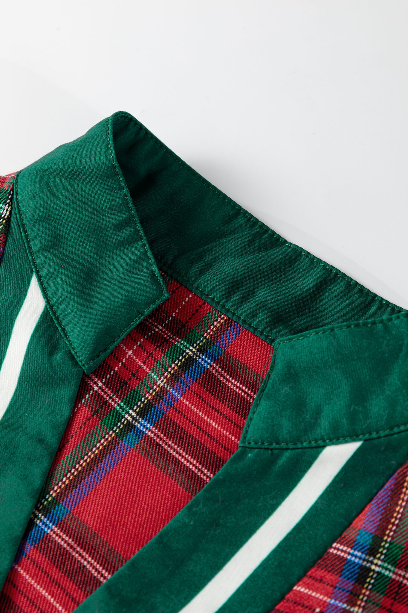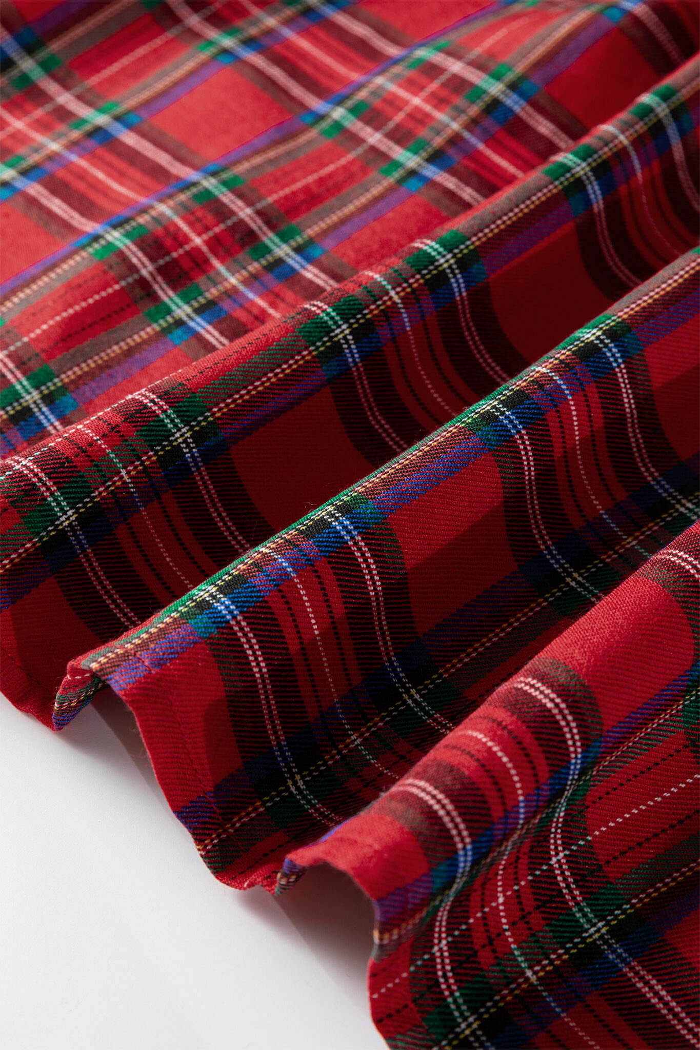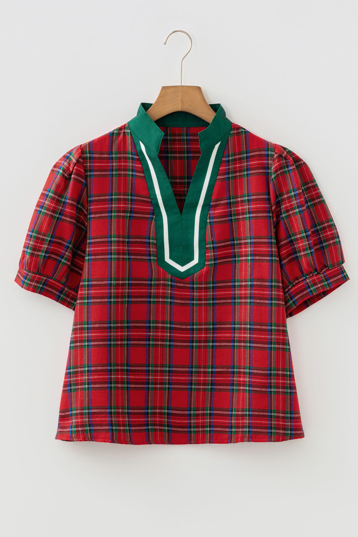 Red Plaid Print Contrast Trim V Neck Short Sleeve Blouse