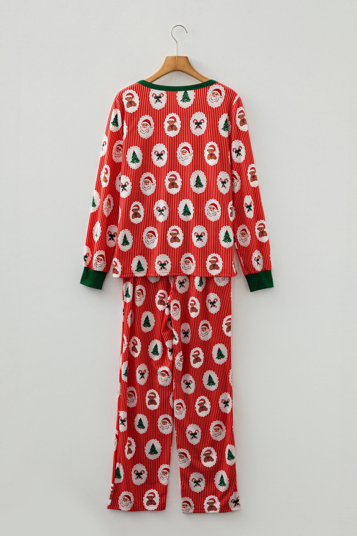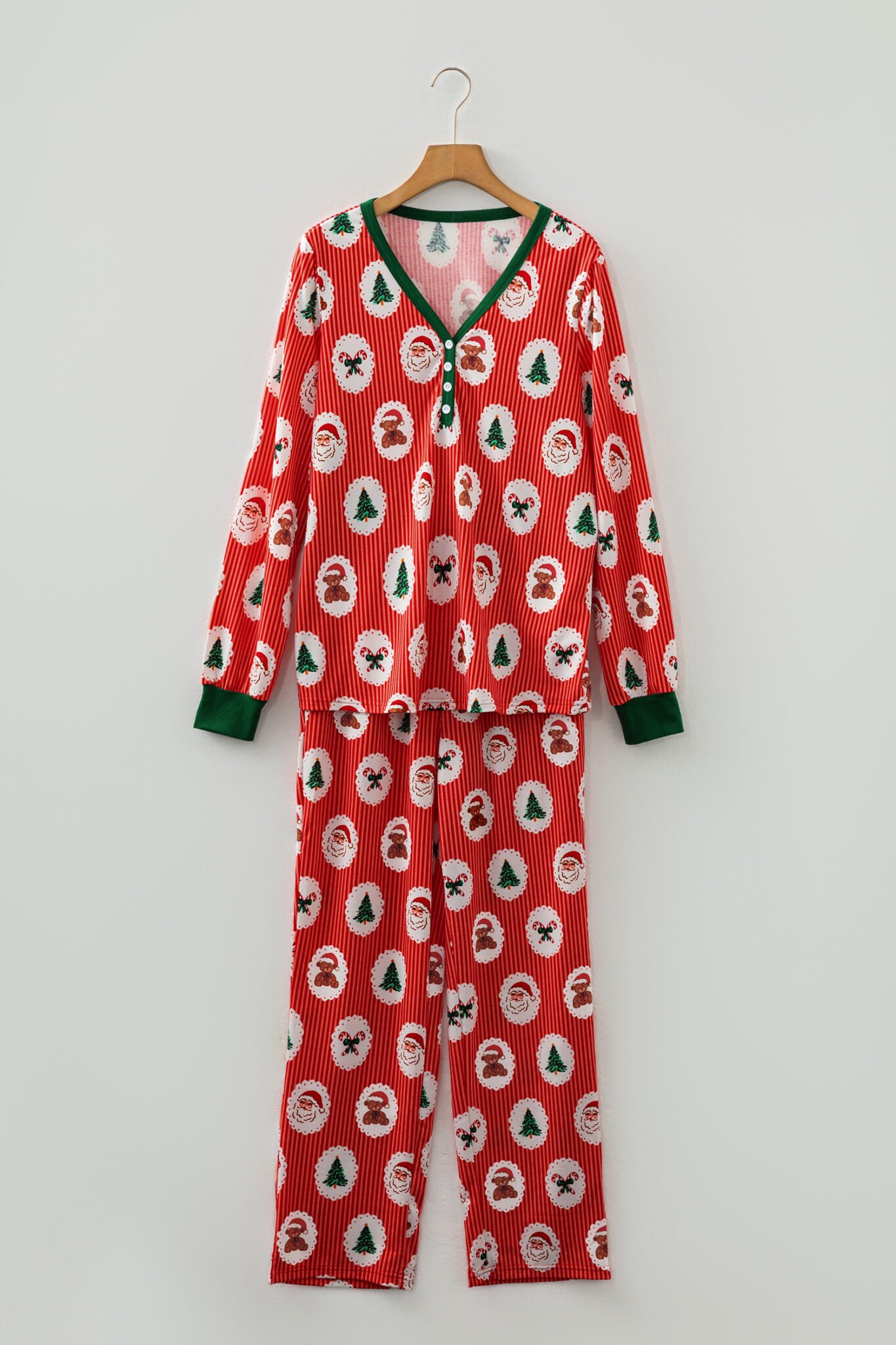 Red Stripe Christmas Fashion Print Henley V Neck Pullover and Jogger Pants 2 Piece Lounge Set