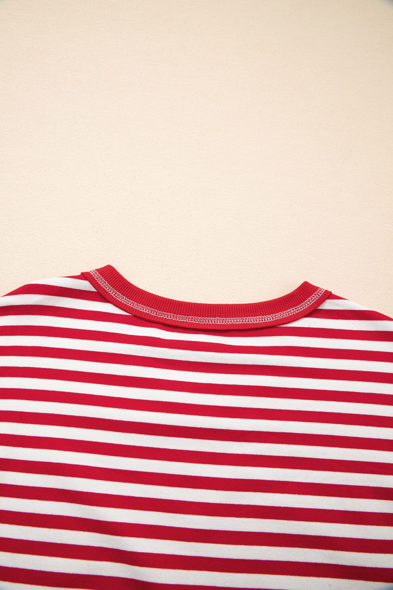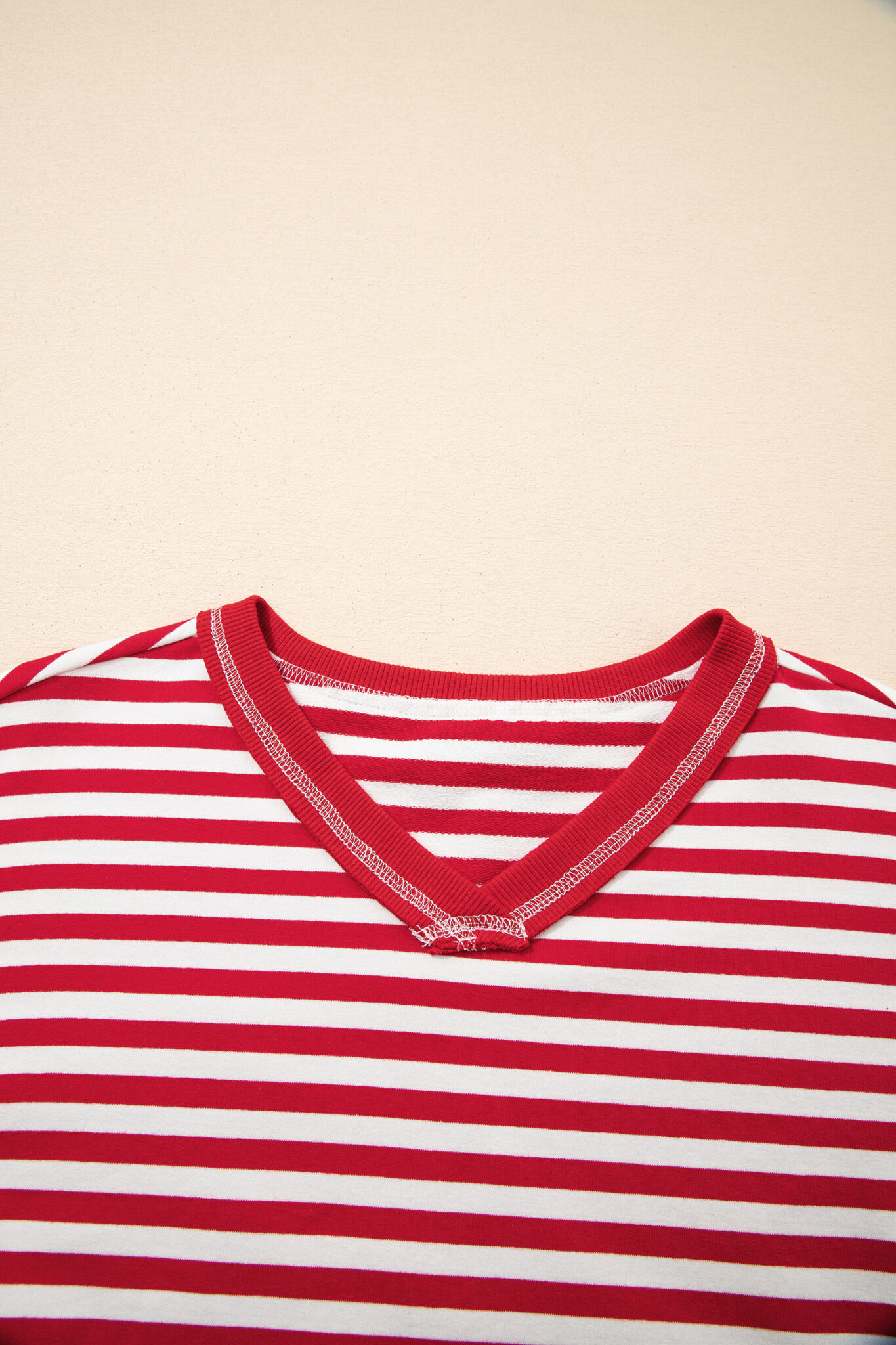 Red Stripe Exposed Seam V Neck Balloon Sleeve Pullover