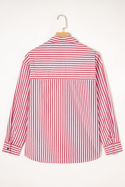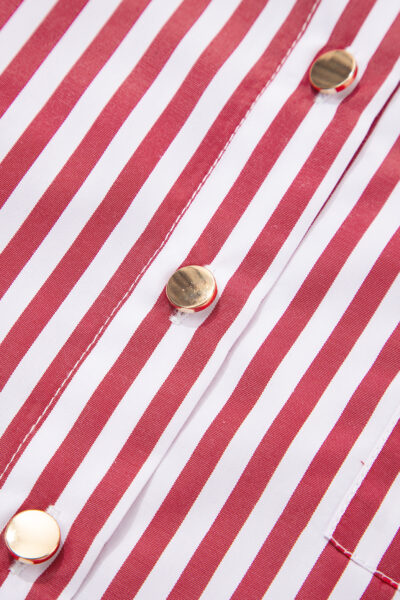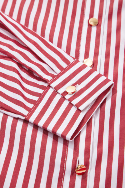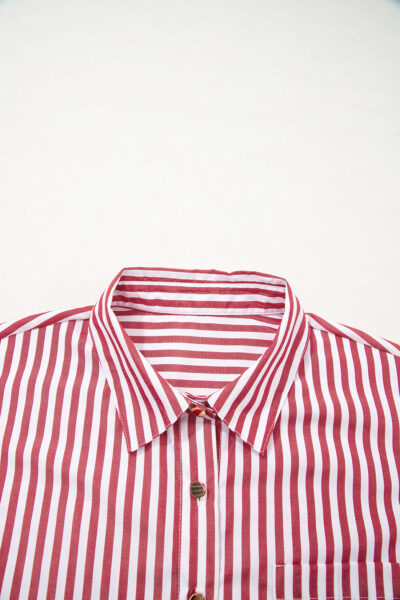 Red Stripe Patched Pocket Side Slit Loose Shirt