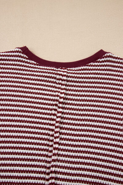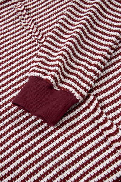 Red Stripe Ribbed Trim Drop Shoulder Long Sleeve Oversize Top