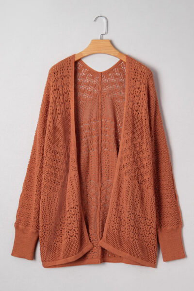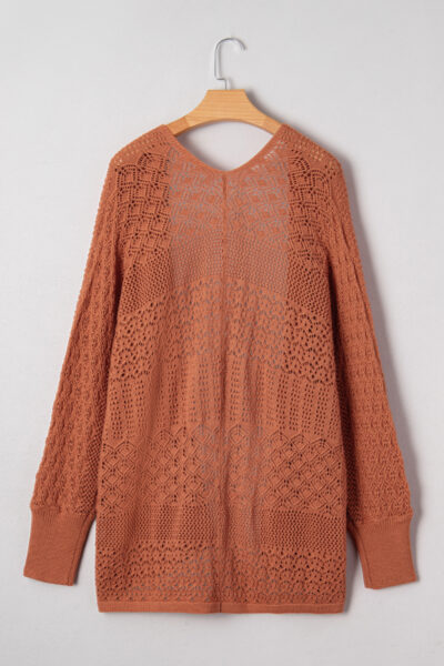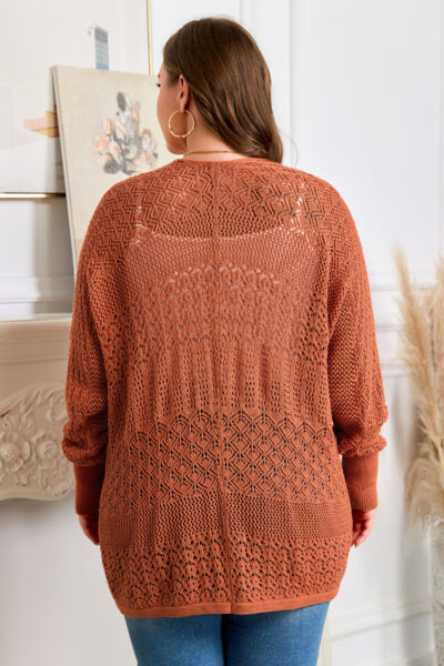 Redwood Burl Mixed Pattern Knitted Open Front Plus Cardigan