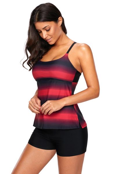 Rochelle Womens Criss Cross Color Block Print Tankini Boyshorts Swimsuit Rosy