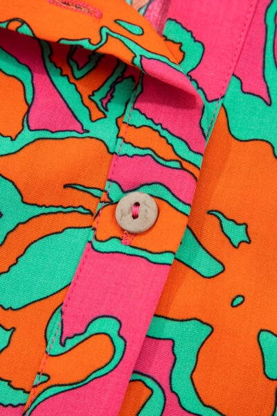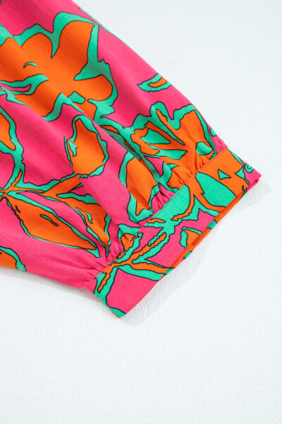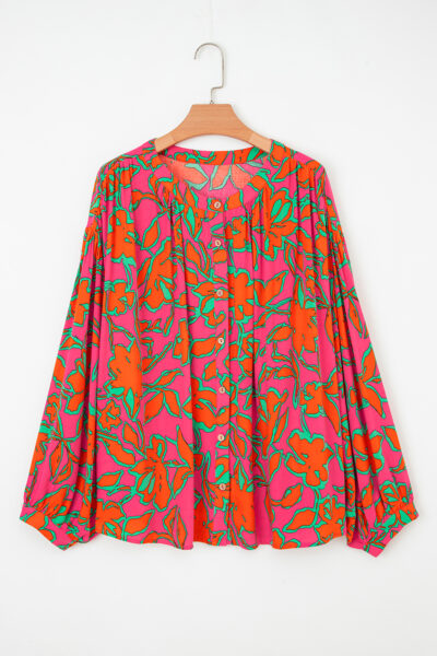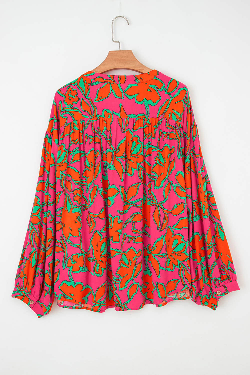 Rose Floral Print Batwing Sleeve Buttoned Loose Fit Shirt