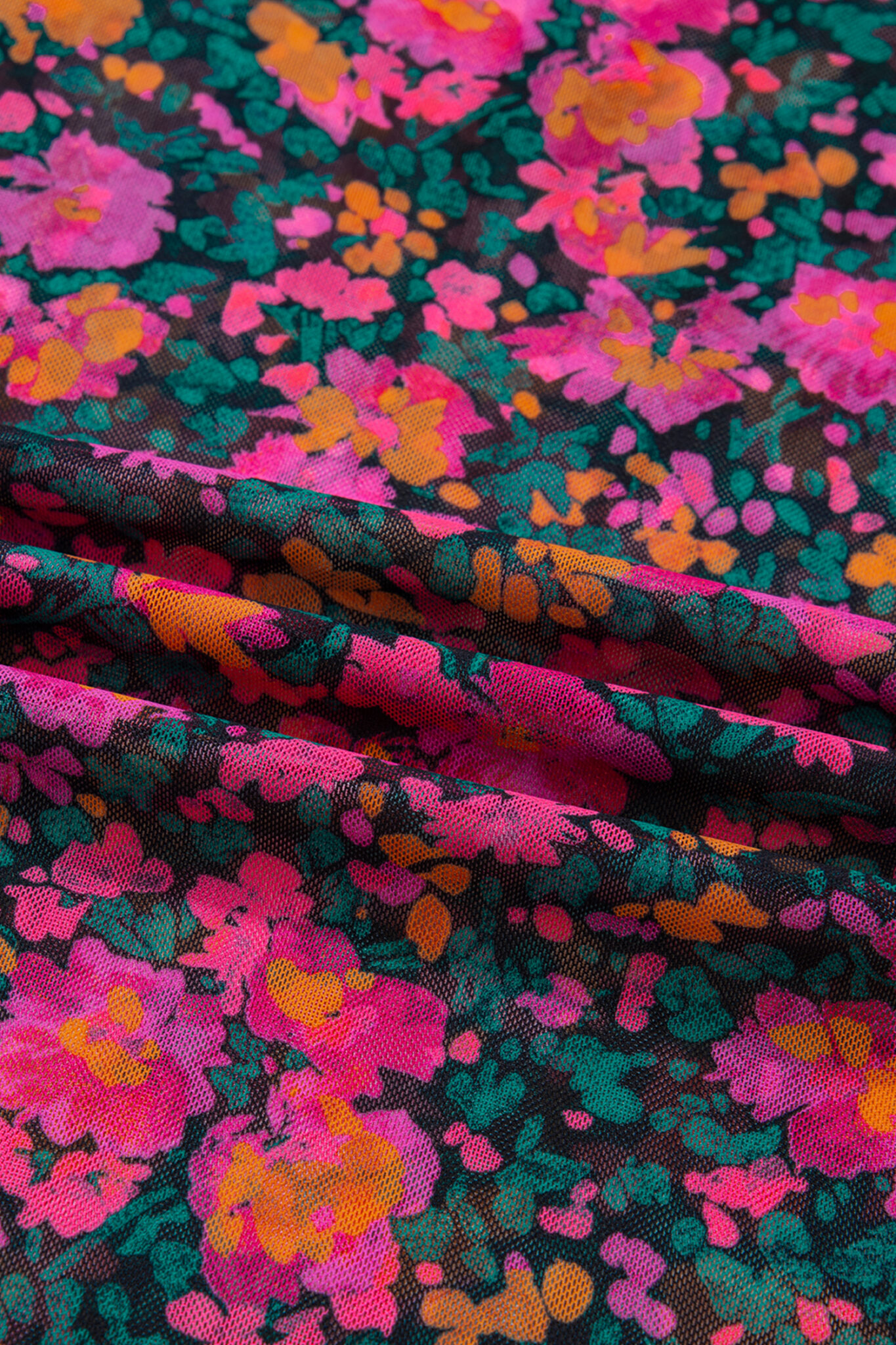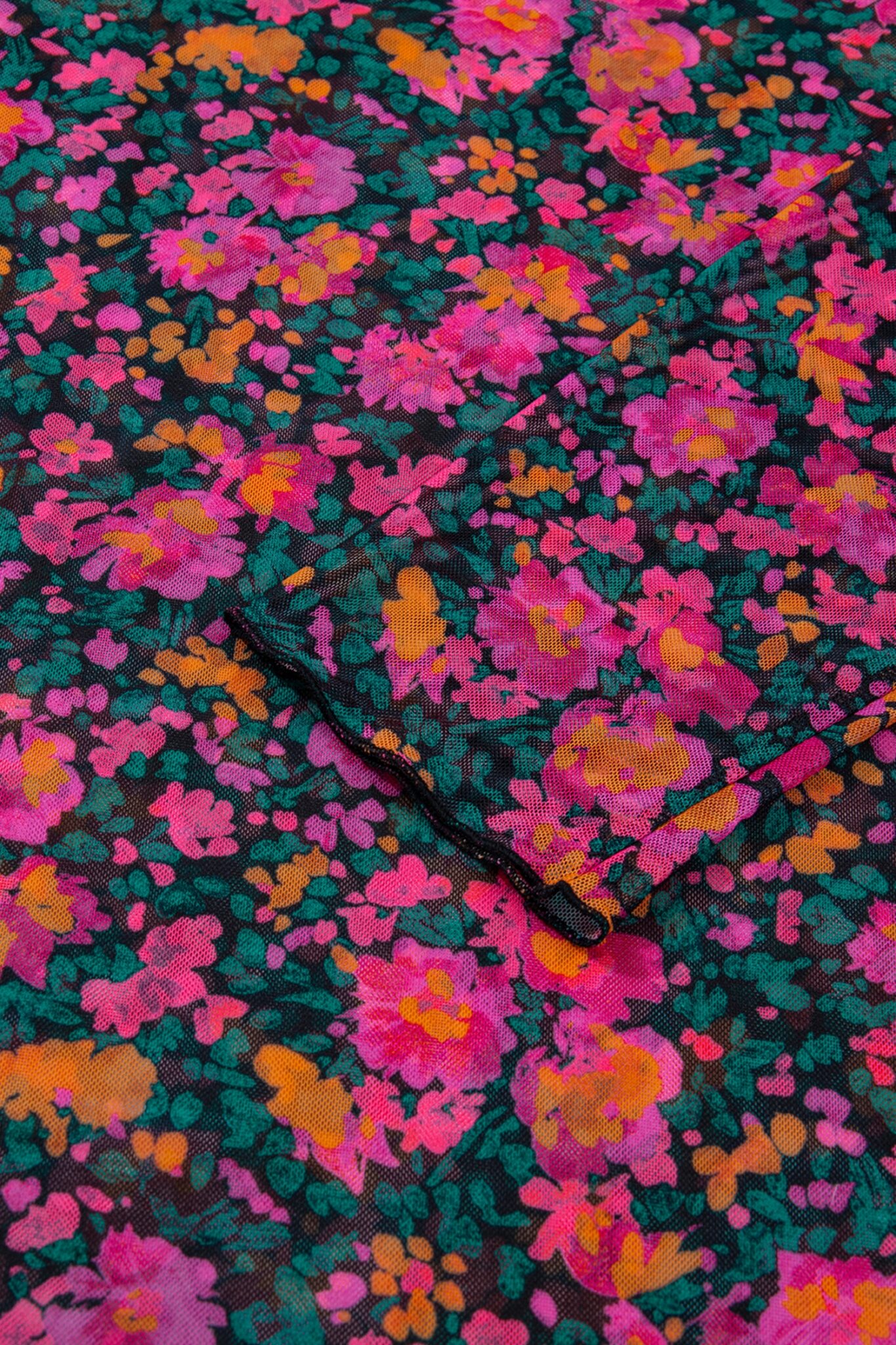 Rose Plus Size Vintage Floral Print Mesh Long Sleeve Top