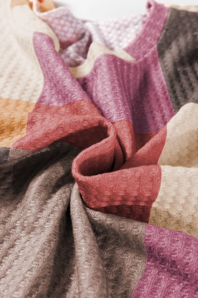 Rose Red Checkered Print Textured Knit Long Sleeve Loose Top