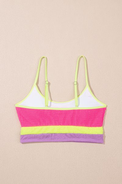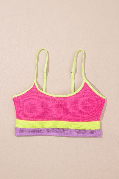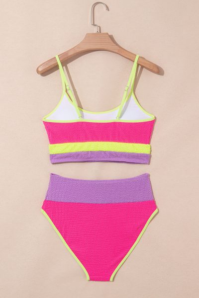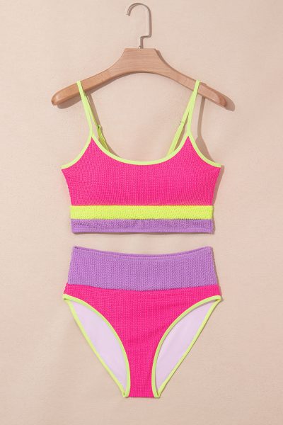 Rose Red Color Block High Waisted Sexy Bikini Set