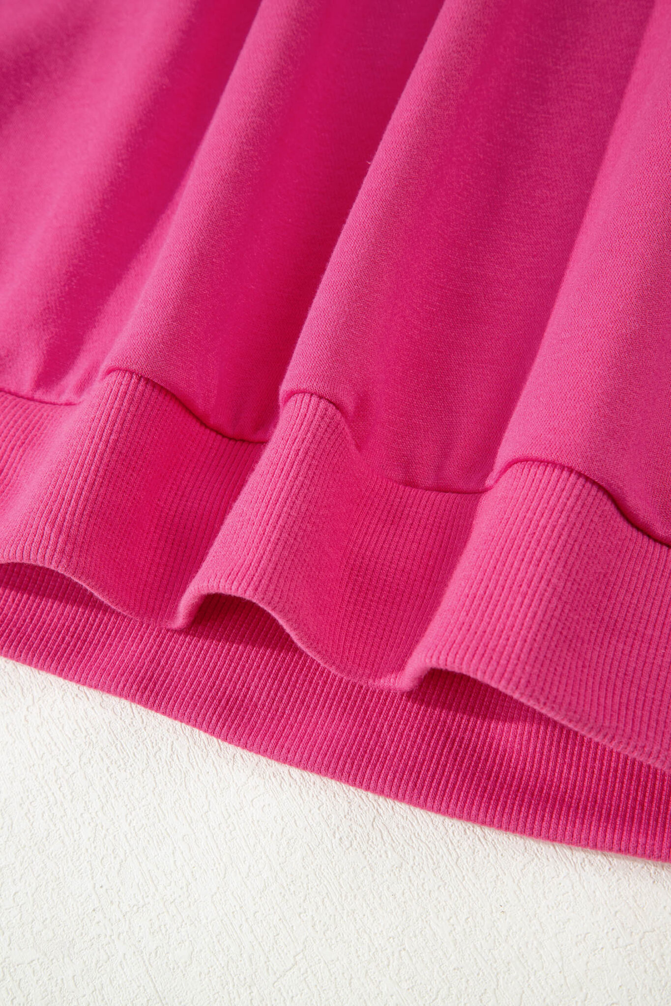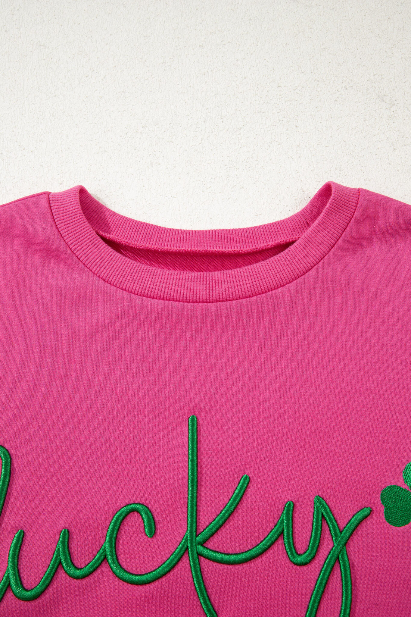 Rose Red Lucky Clover Embroidered Loose Pullover Sweatshirt