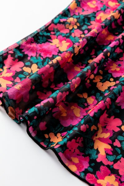Rose Slim Fit Floral Mesh Long Sleeve Mock Neck Top