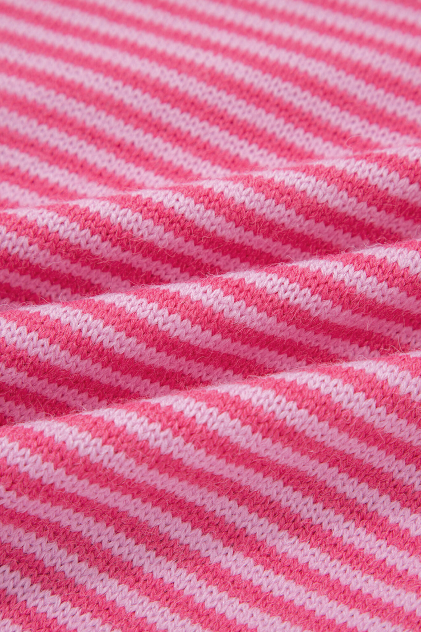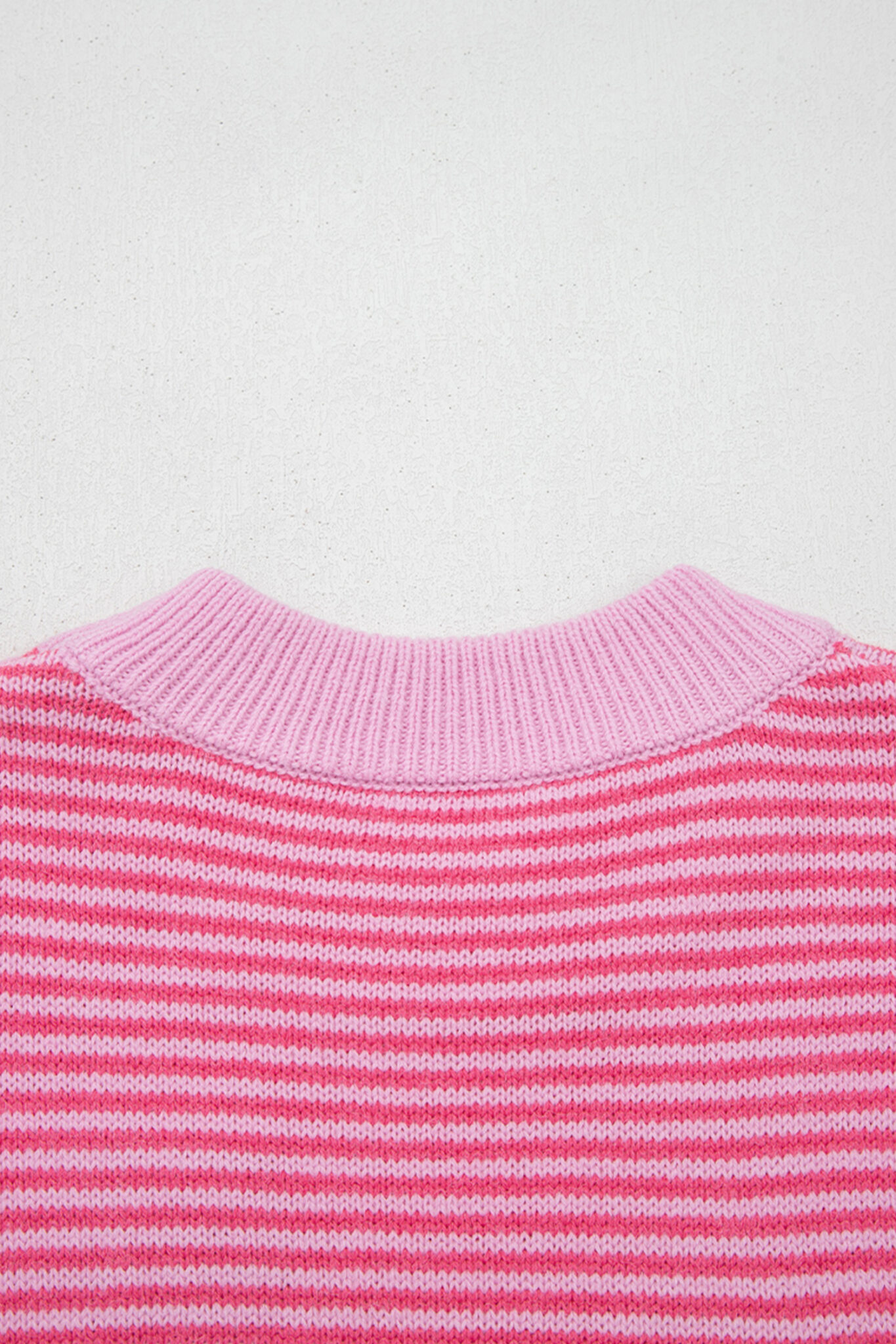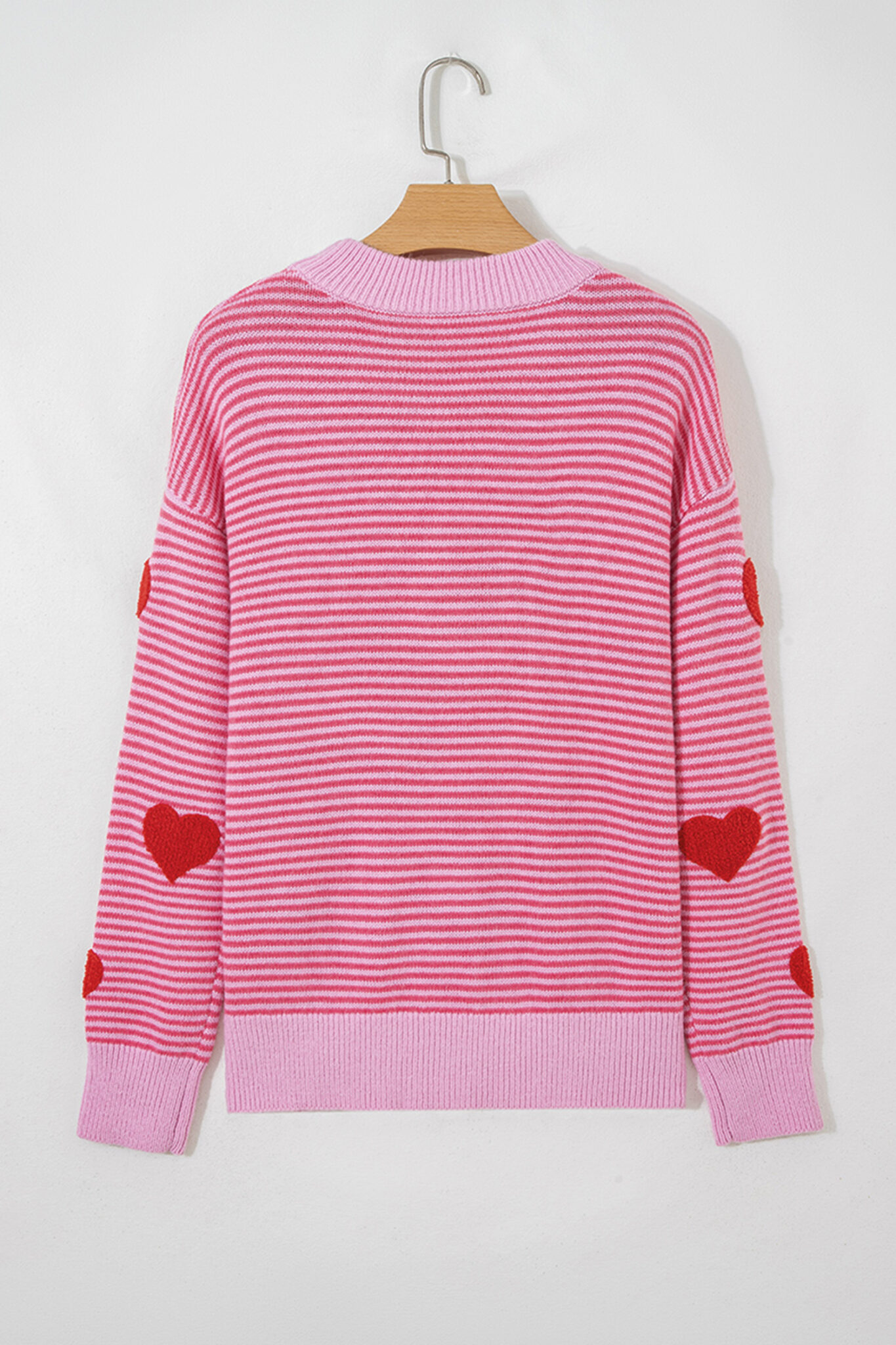 Rose Stripe Contrast Heart Pattern Valentine Knit Sweater