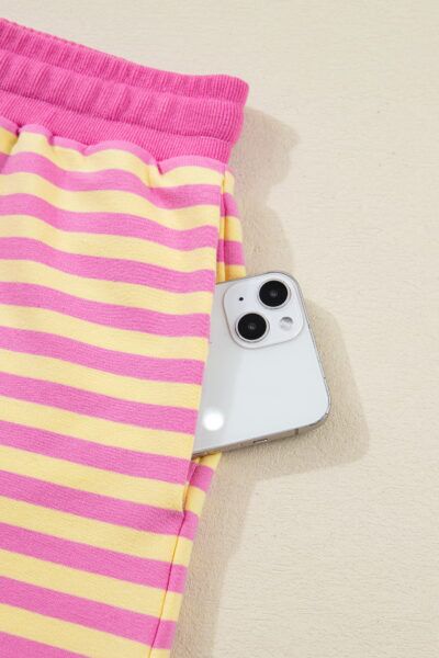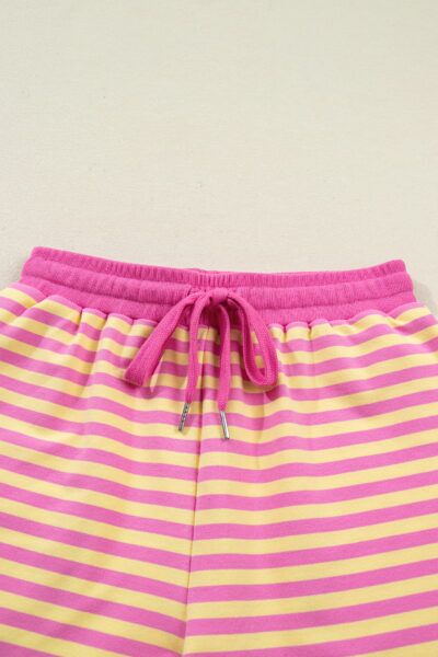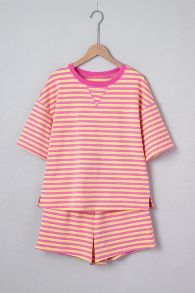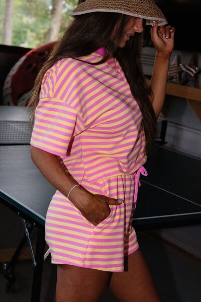 Rose Stripe Drop Shoulder Boxy Casual Terry Short Set