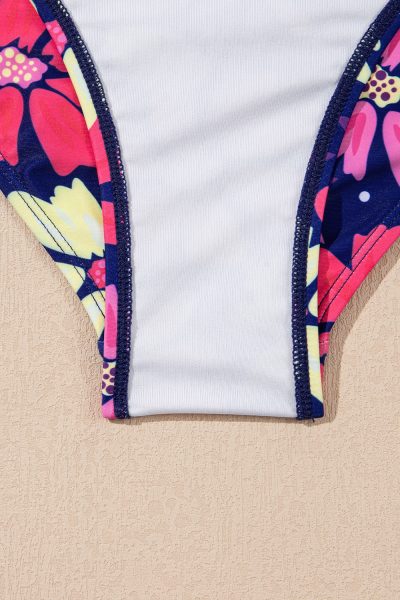 Rose V Neck Ruffled Hem Floral Bottom Tankini Set