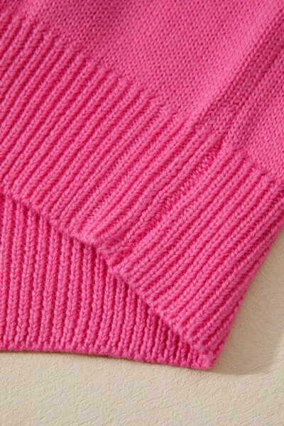 Sachet Pink Contrast Crew Neck Pearled Decor Drop Shoulder Knit Sweater
