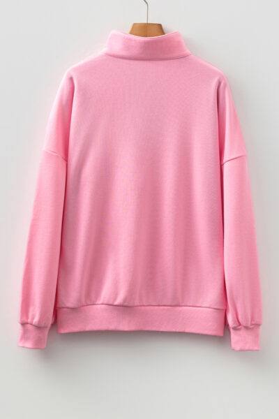 Sachet Pink Contrast Striped Patchwork Zip Collar Pullover Sweatshirt
