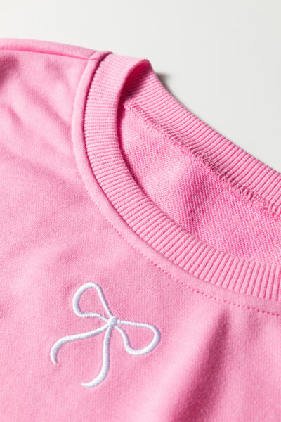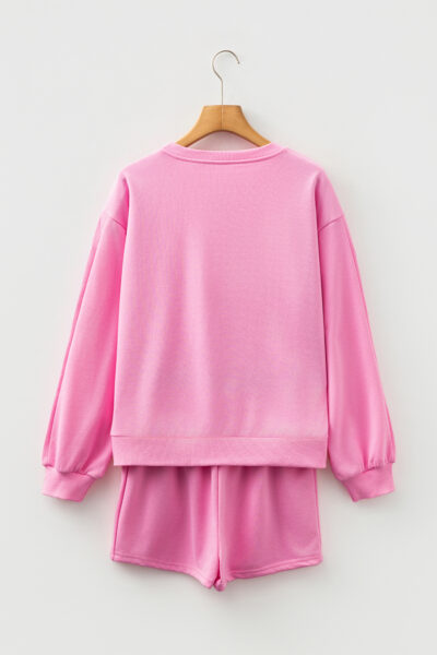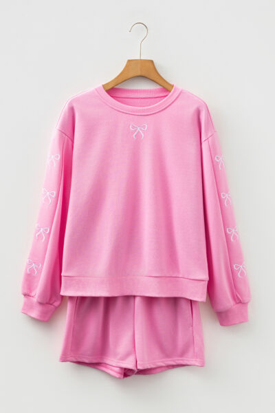 Sachet Pink Girly Bow Embroidered Detail Puff Sleeve Pullover 2pcs Short Set