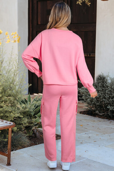 Sachet Pink Solid Color Patchwork Pullover Top and Cargo Pants Set