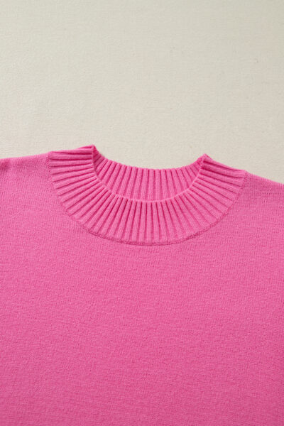 Sachet Pink Solid Color Ribbed Trim Round Neck Ruffle Short Sleeve Sweater