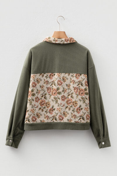 Sage Green Ribbed Retro Floral Patchwork Shirt Style Jacket