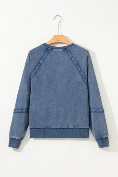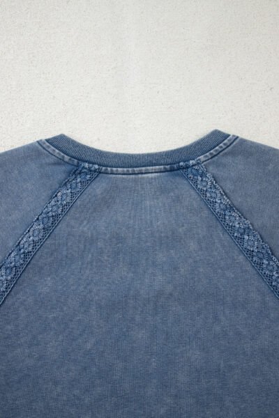 Sail Blue Lace Patchwork Detail Notched Neck Mineral Wash Baggy Sweatshirt