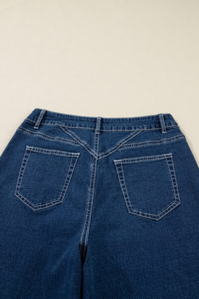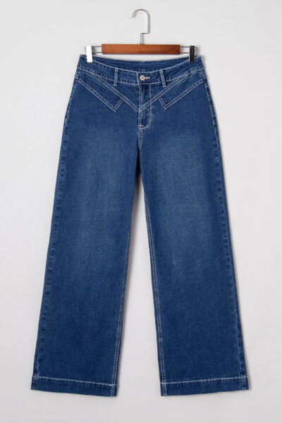 Sail Blue Stitched Waist Detail Loose Cuffed Jeans
