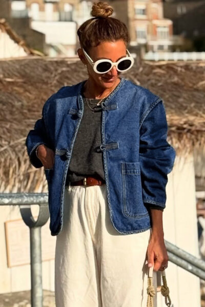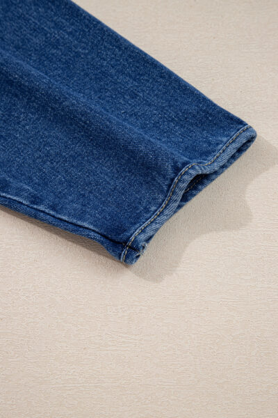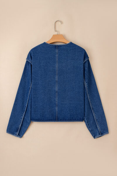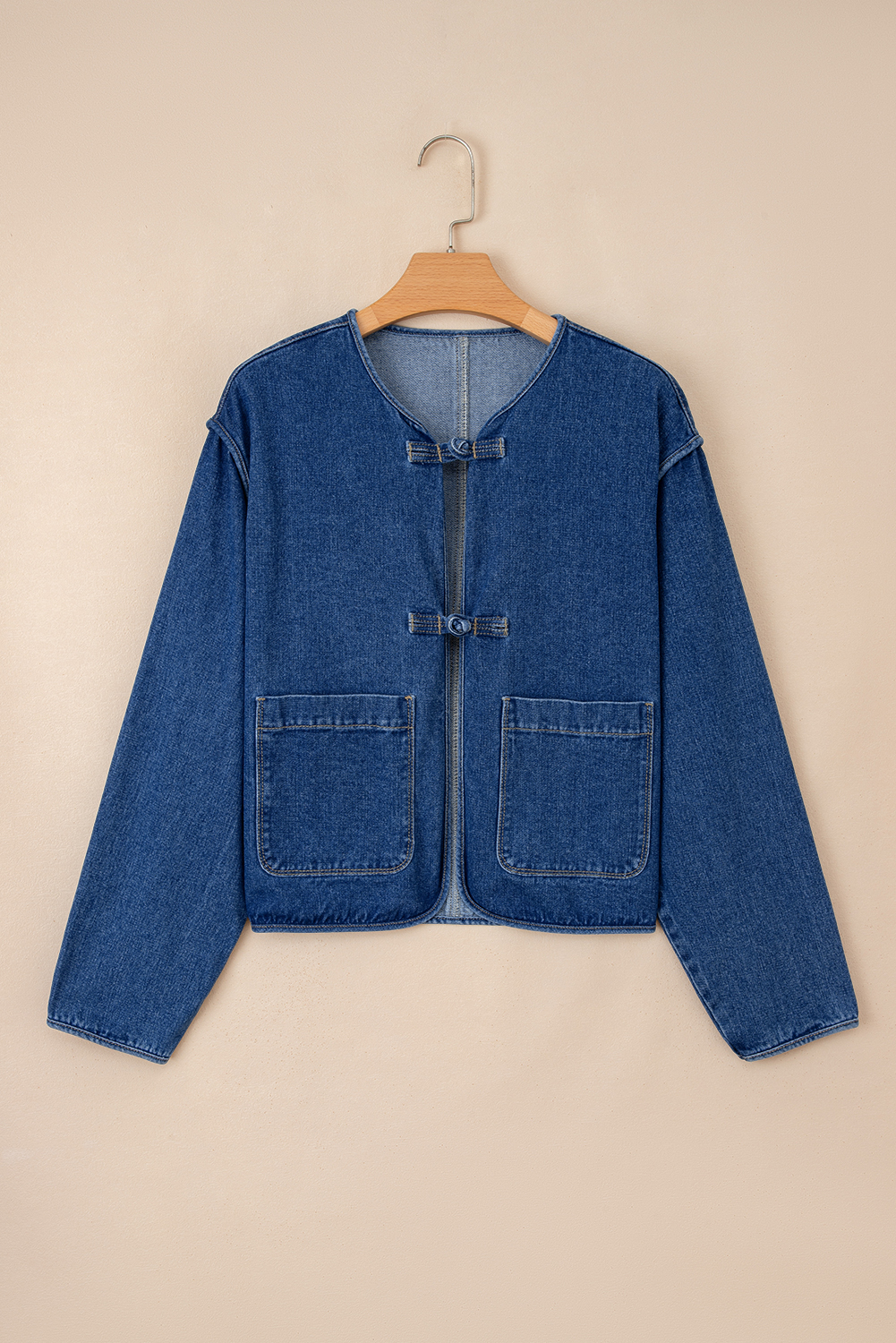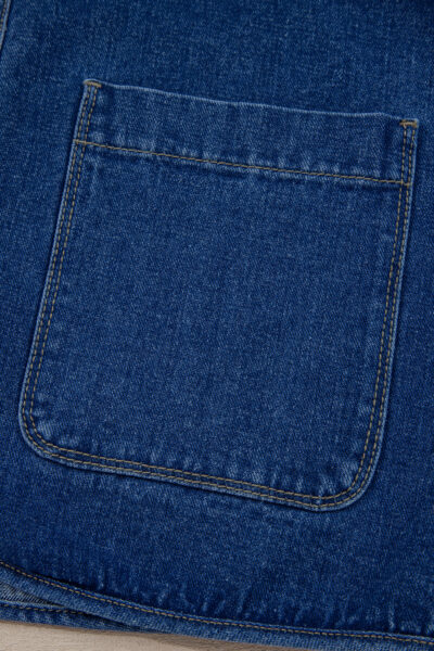 Sail Blue Vintage Fastening Big Patched Pockets Straight Cut Deep Wash Denim Jacket