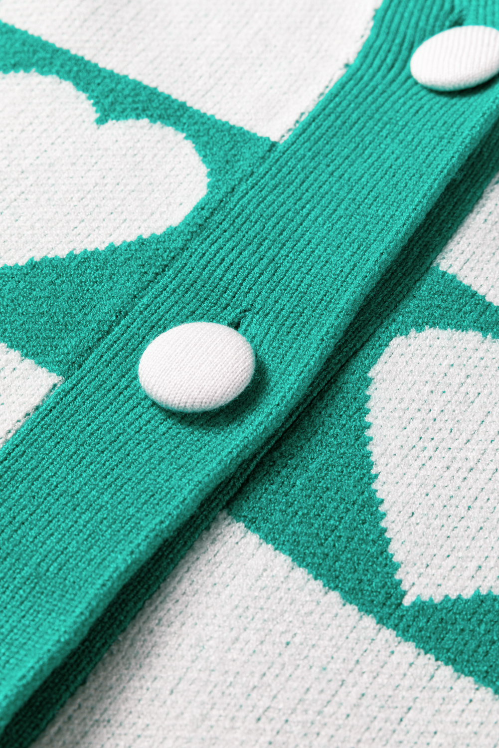 Sea Green Plaid Heart Knit V Neck Button Down Sweater Cardigan