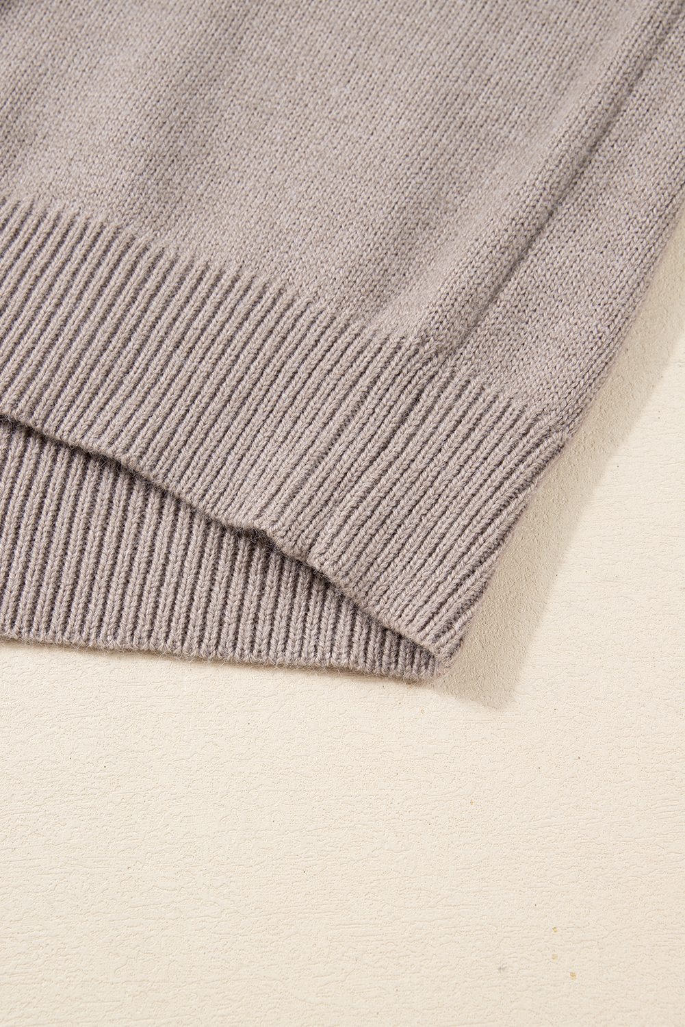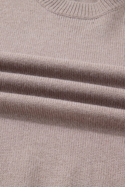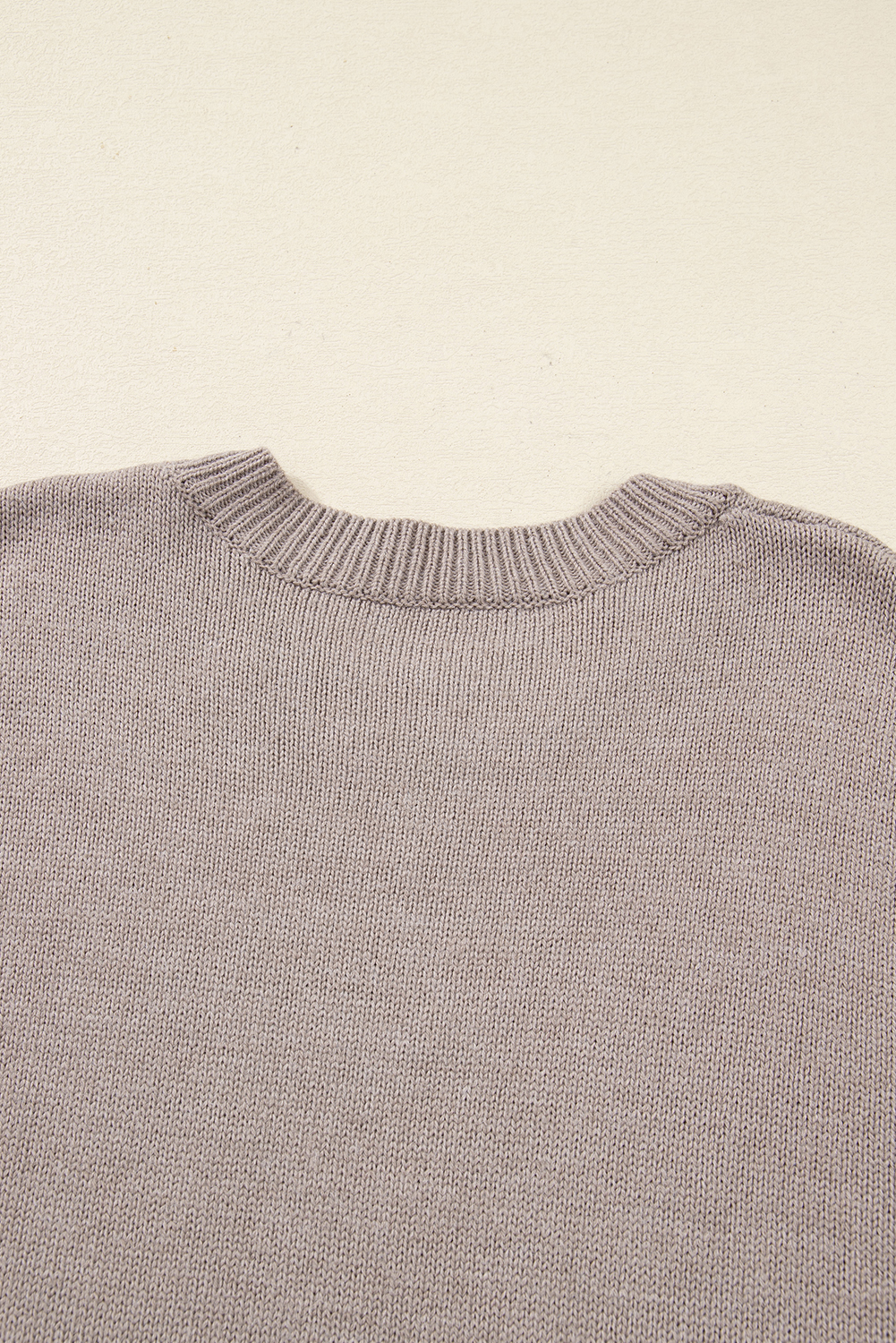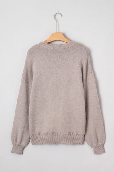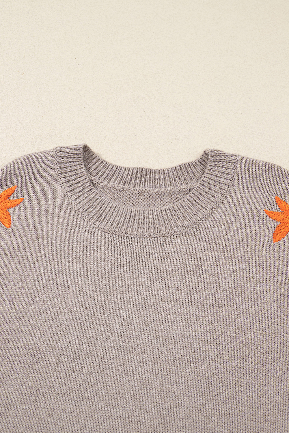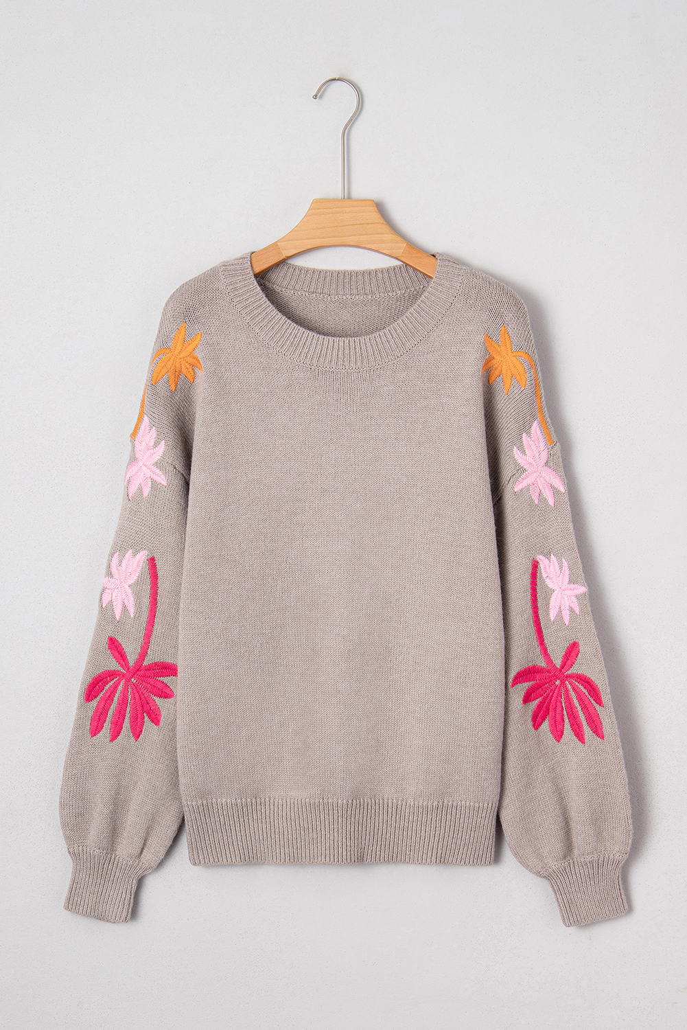 Simply Taupe Embroidered Floral Sleeve Round Neck Loose Sweater