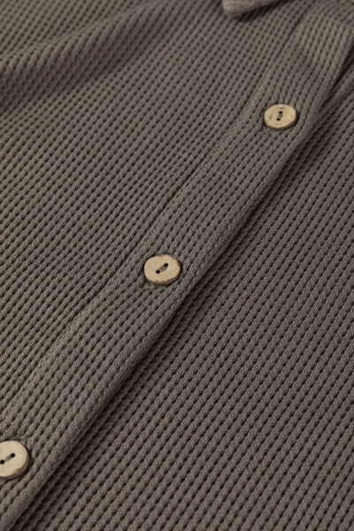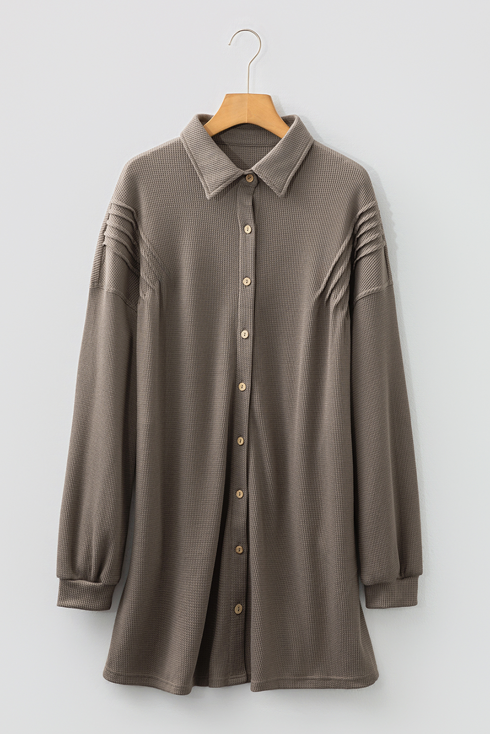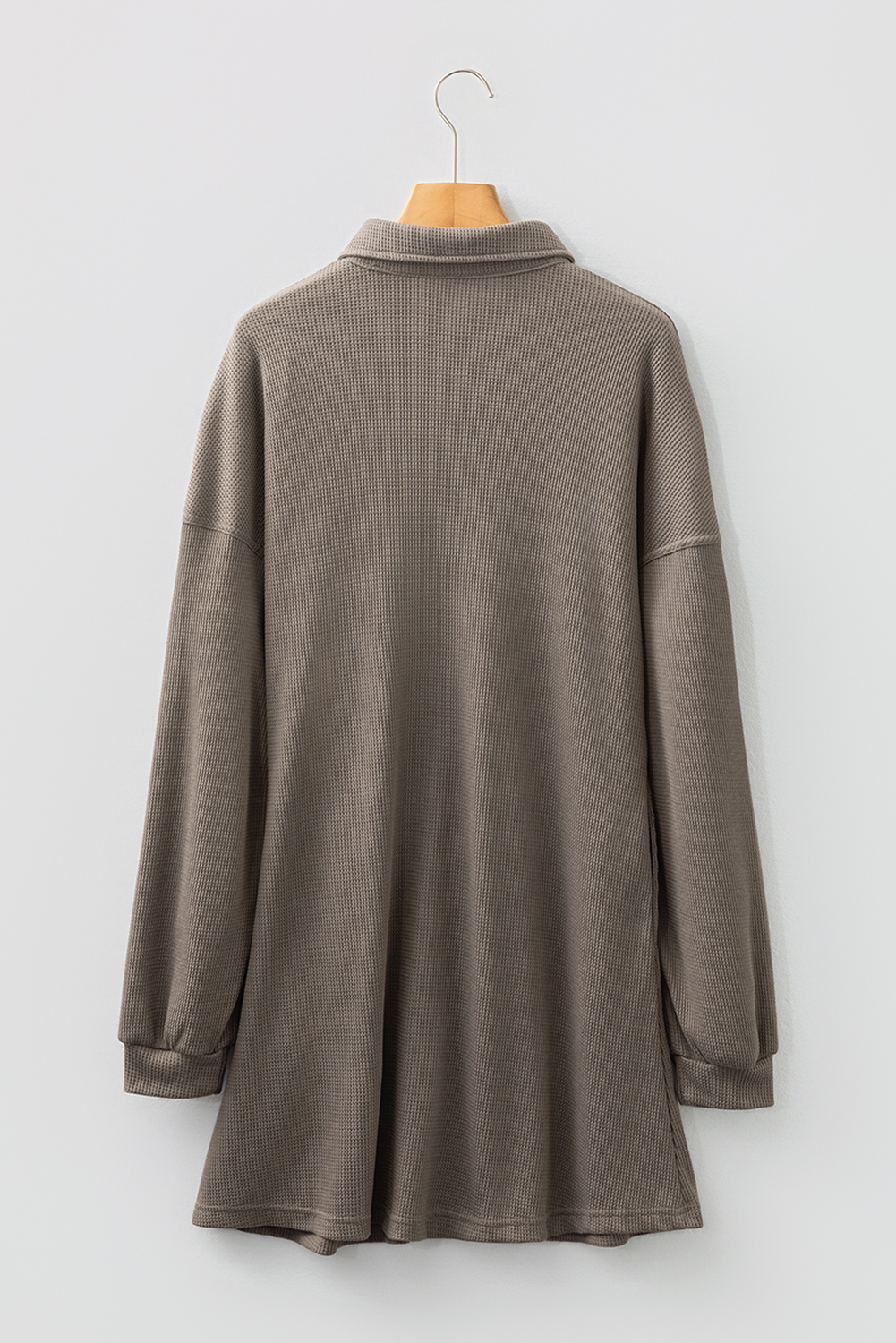 Simply Taupe Waffle Knit Shirt Tunic Dress