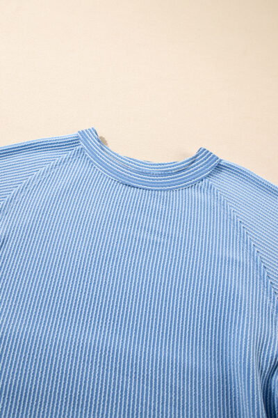 Sky Blue Corded Lantern Sleeve Top High Waist Ruffled Mini Skirt Set