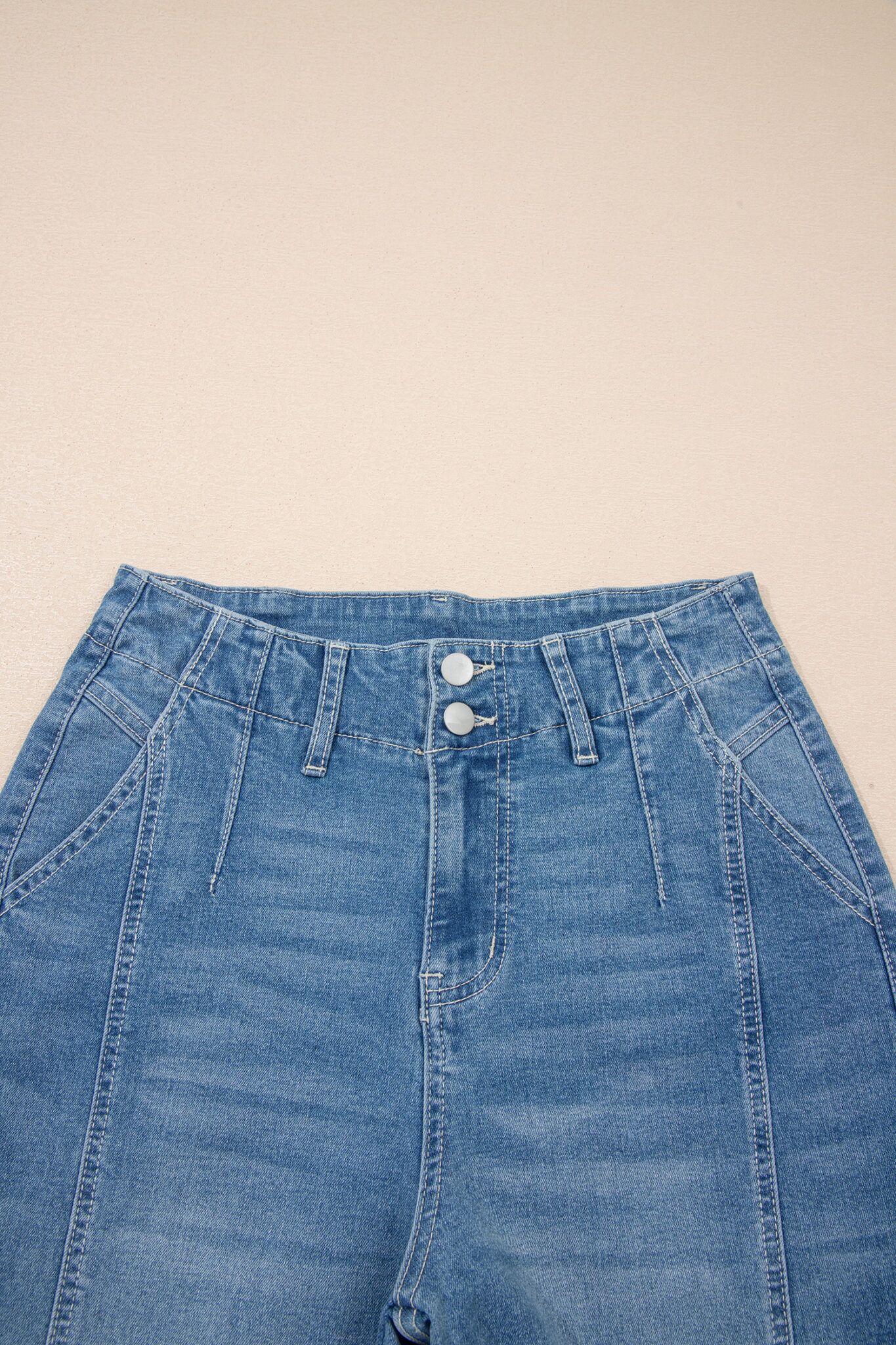 Sky Blue Medium Wash Cuffed Barrel Jeans