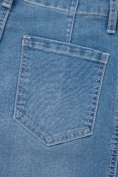 Soft denim fabric provides comfortable all-day wear.