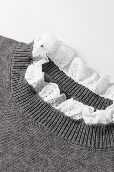 Sleet Lace Trim Patchwork Buttoned Cuffs Loose Sweater