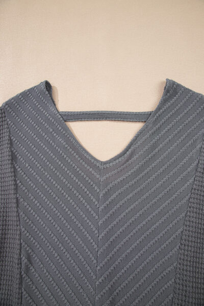 Sleet V Neck Chevron Texture Patchwork Long Sleeve Knit Top