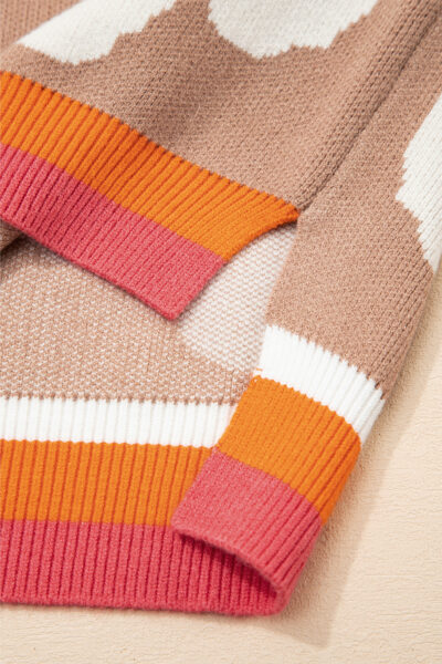 Smoke Gray Big Flower Pattern Contrast Striped Baggy Sweater