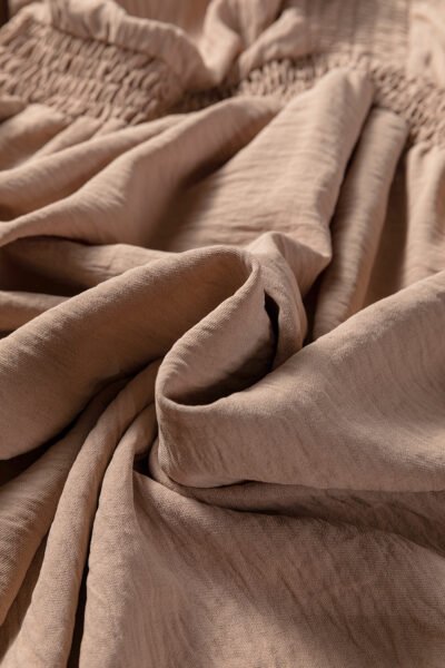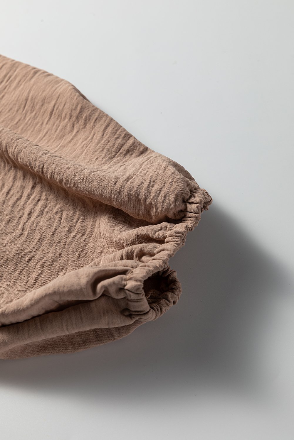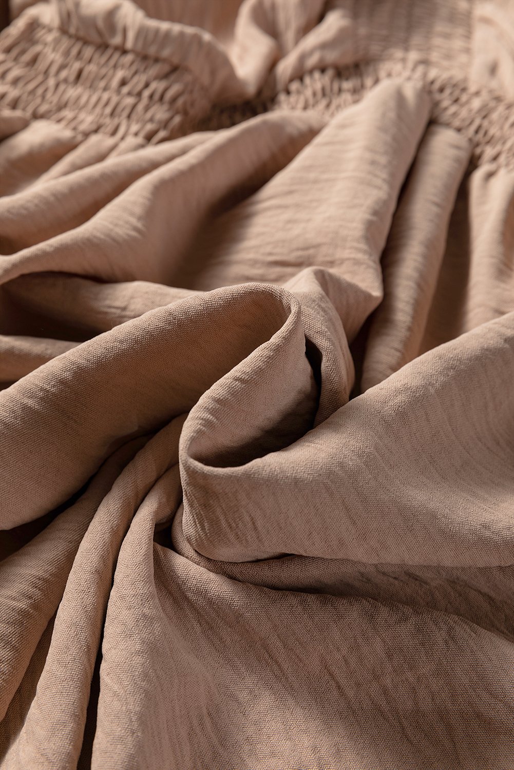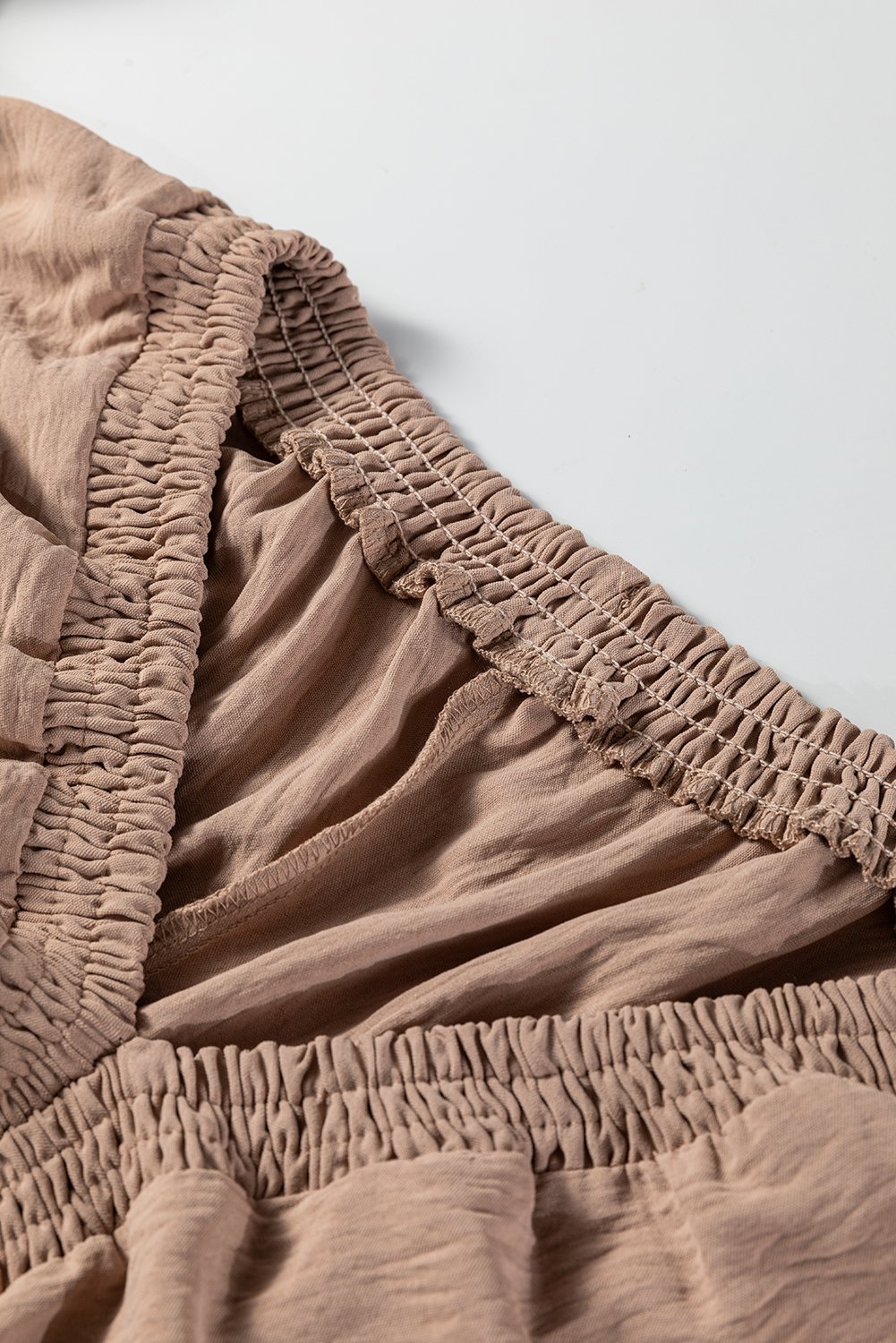 Smoke Gray Deep V Neck Bubble Sleeve Smocked Mini Dress
