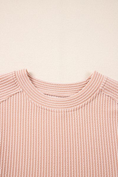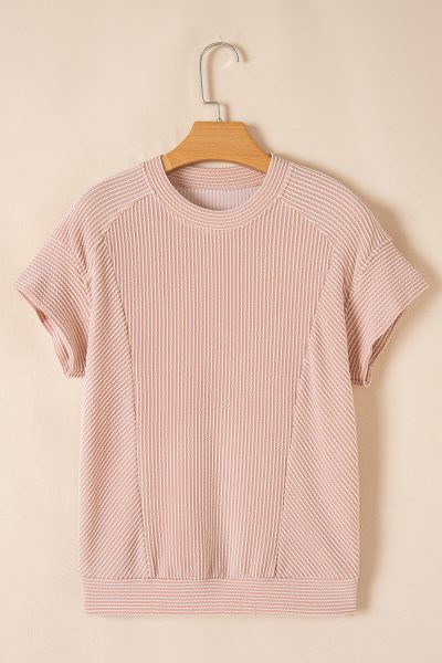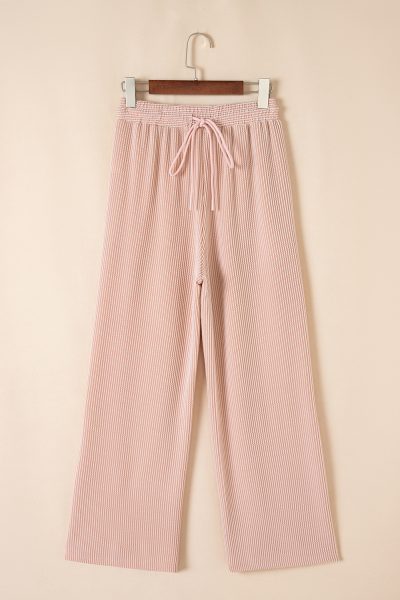 Smoke Gray Solid Corded Knit Short Sleeve T Shirt and Wide Leg Pants Set