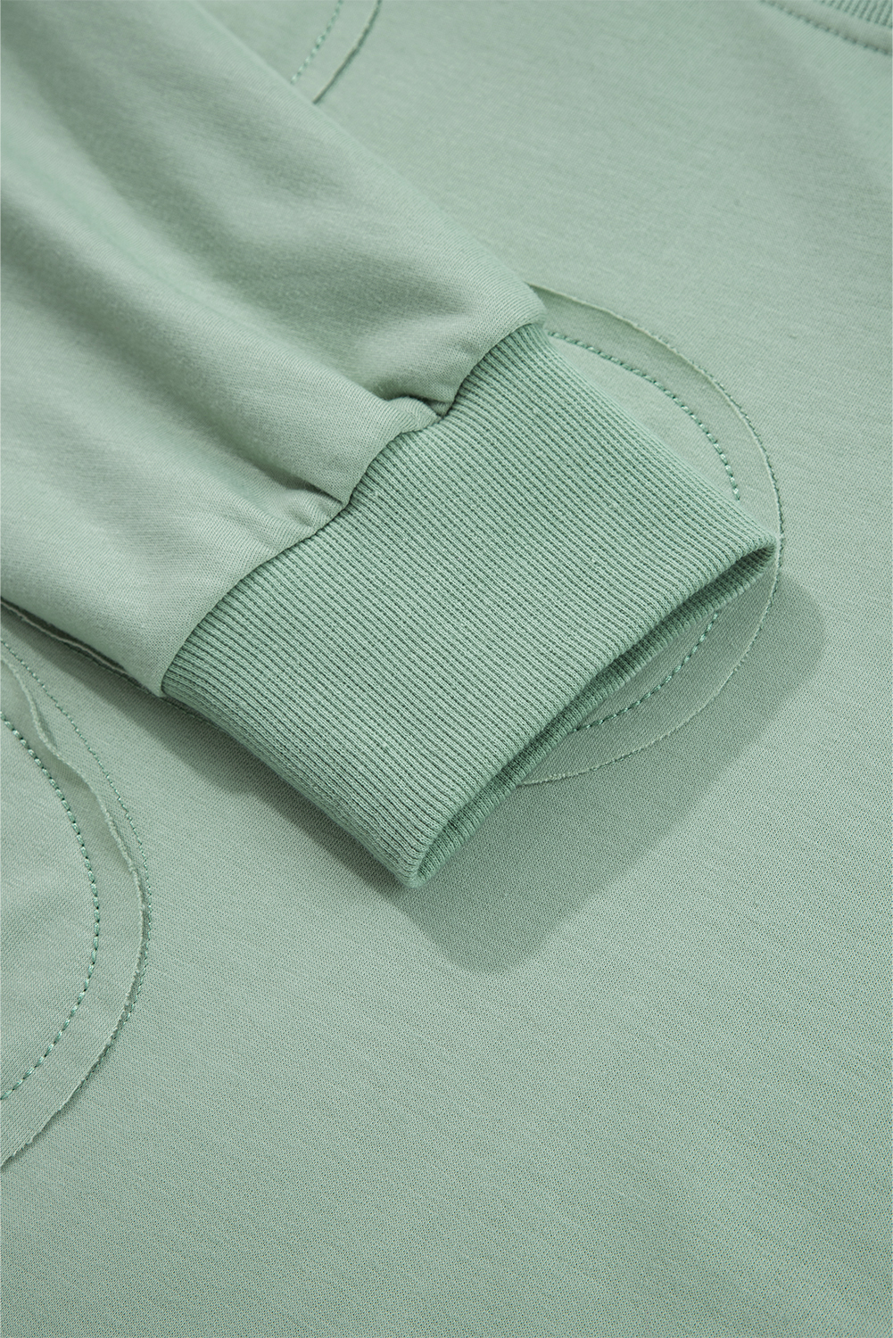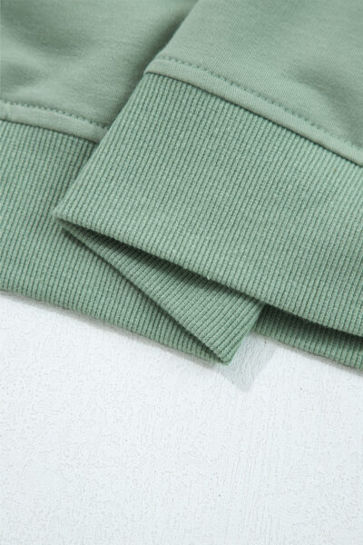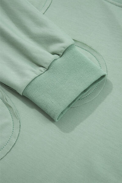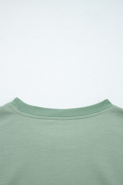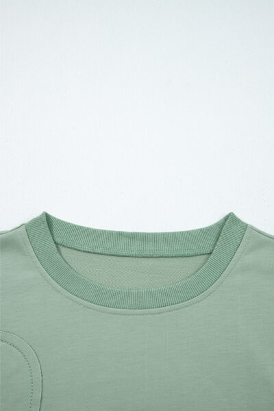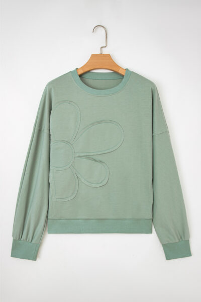 Smoke Green Raw Edge Flower Patch Drop Shoulder Casual Top