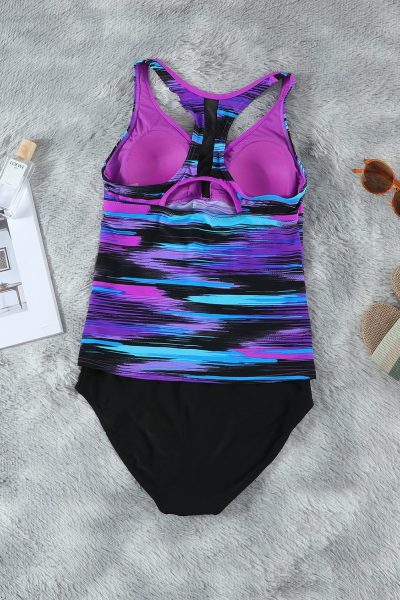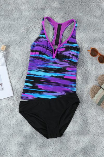 Stephanie Women Tie-dye Racerback Tankini Swimsuit Purple